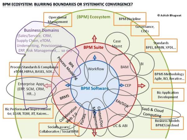Come 2010, and we are dealing with more variants and more convergence areas. Depending on where you look from and where your stakes lie, this could be a case of blurring boundaries or of significant convergence in BPM ecosystem.